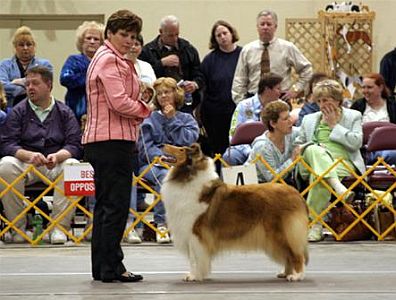 She made a lovely picture backed up by real quality. If ever one wished to see a live version of Lorraine Still's Collie standard, this would be it! She was a real show dog. Thank you to her breeders and owners for bringing this bitch to me in top condition."