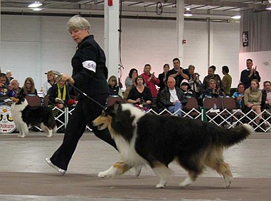 ...The Roughs were a pleasure to judge, as is any quality entry, but this time it ran deeper. As those who were there are well aware, the final judging for BOV was at the same time fun and challenging. I had four dogs out, including my two Veterans, well-known by me and among my favorite Collies of all time: Ch. Barksdale Lochlaren Liaison, ROM and Ch. Rosebank Lochlaren Keep It A Secret, the latter being my Winners Bitch when I last judged the National and who went on the take BOB after that show. Ringside was urging me on a bit as I contemplated the four, and I responded, "This is not easy." It was not! My heart was with the veterans, but as I looked, the spotlight was on the two younger dogs in their prime. Youth was not to be denied."